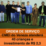 A presidente do bairro Veneza, Camila Geminiano, destacou que a construção do CMEI é uma conquista aguardada pela comunidade há bastante tempo. “É algo que a gente tem esperado por muito tempo. Agora vamos dar mais um passo adiante. Serão 40 vagas, o que já atende boa parte da necessidade. São 40 mães que vão poder ir trabalhar tranquilas, sabendo que têm onde deixar seus filhos. Eu também sou mãe e foi isso que a gente buscou tanto para o bairro”, afirmou.